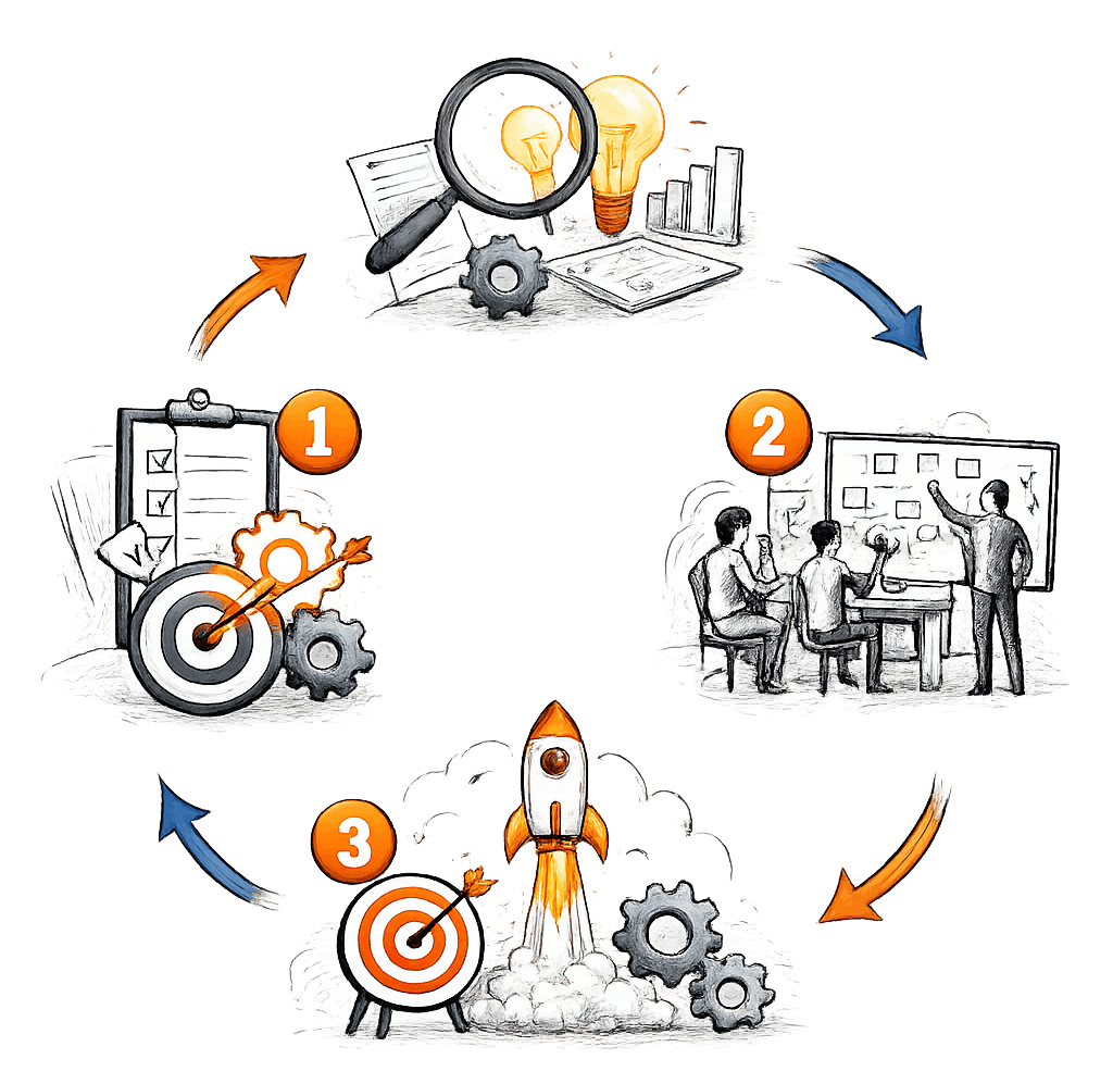 Our process integrates strategic planning, cross-sector collaboration, technology adoption, continuous improvement, and accountability to ensure efficient execution, measurable outcomes, customer satisfaction, and long-term organizational resilience.